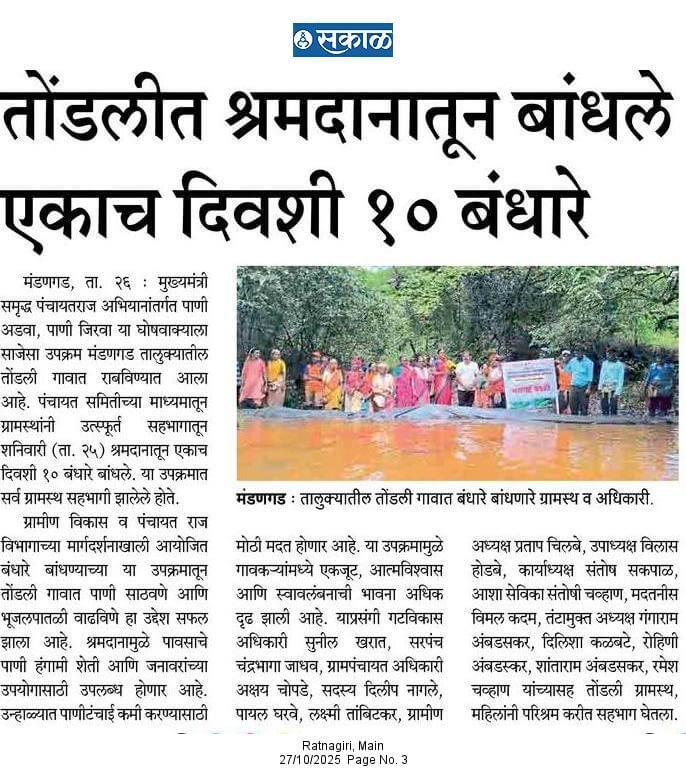 तोंडली ग्रामपंचायतीच्या डिजिटल व्यासपीठावर आपले हार्दिक स्वागत आहे.